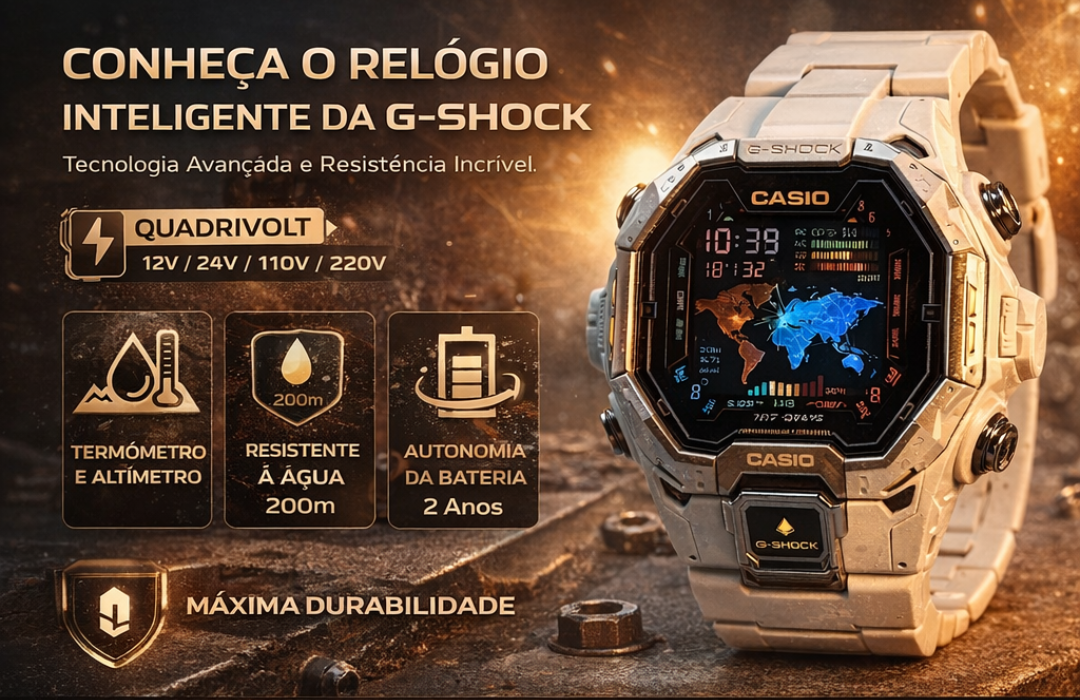 Imagine um relógio feito para quem não aceita limites. O Relógio Ultra Resistente combina design robusto, tecnologia avançada e autonomia total para acompanhar você em qualquer desafio — do dia a dia às situações mais extremas.