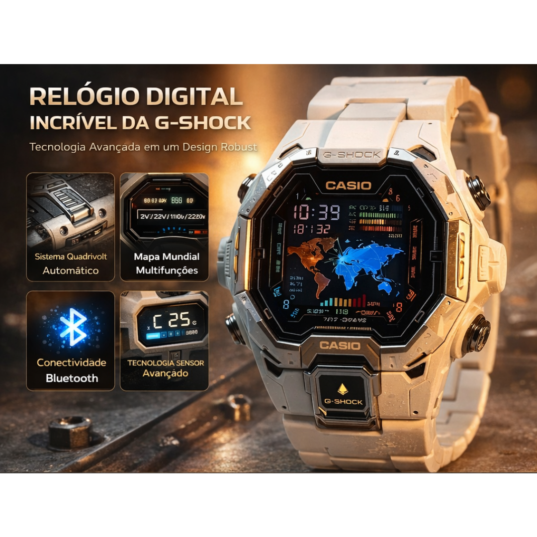Com um visual robusto e moderno, este não passa despercebido. Ele transmite força, tecnologia e personalidade logo no primeiro olhar. É o tipo de relógio que chama atenção sem precisar falar nada.