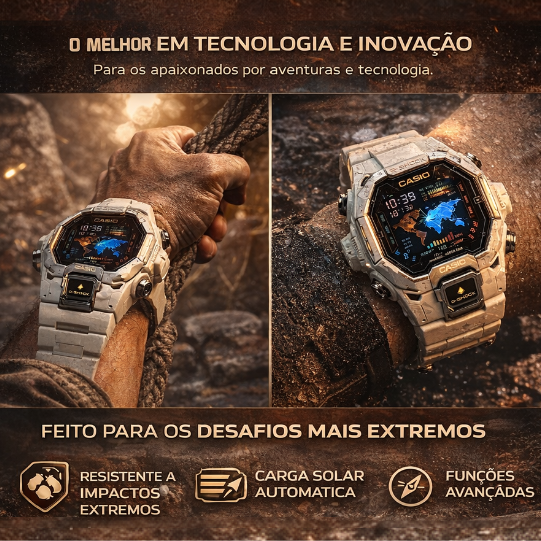 Estoque limitado. Garanta agora o seu Relógio Ultra Resistente com Bluetooth e Energia Solar e experimente a combinação perfeita entre resistência, tecnologia e estilo.